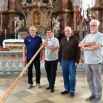Nach der Übernachtung im Kloster, eine besondere Ehre den Gästen aus Berlin gegenüber, startete der Morgen mit einer heiligen Messe in der Basilika. Mit einem anschließenden Rundgang durch das Kirchenschiff mit seiner Rokoko-Architektur ging das gelungene Schafkopftreffen dem Ende entgegen. Zum Abschluss ließ der Vorsitzenden des Bayernvereins in Berlin in der Basilika sein Alphorn zu einem kurzen Konzert erklingen. Alpine Klänge in dem Sakralbau, ein akustisches Klangerlebnis der besonderen Art, waren sicherlich eine Premiere. Es war eine gelungene Wiederbelebung des Schafkopfspiels in Vierzehnheiligen. Den Franziskanern gilt ein herzliches „Vergelt’s Gott“ für deren Gastfreundschaft.