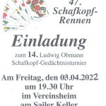 Zum inzwischen 47. Schafkopfrennen und zum 14. Ludwig Obmann-Schafkopf-Gedächtnis-Turnier laden die Trauntaler Trachtler am Freitag, 8. April ein. Beginn ist um 19.30 Uhr im Vereinsheim am Sailer Keller.