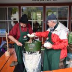 Die Helfer und Helferinnen hatten neue grüne Schürzen mit dem Label vom Gartenbauverein an und waren so gut als Erzeuger des wohl schmeckenden Krautes zu erkennen.