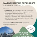 Unter dem Titel „Was braucht ma auf’m Dorf? – Zukunft für Jung und Alt“ laden die Bürger für Schleching am Mittwoch, 14. Januar 2026, zu einer öffentlichen Veranstaltung ein.