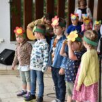 Der Wettergott war nicht gerade gnädig, als es genau zum Beginn der Vorführung der Schlechinger Kindergartenkinder anfing zu regnen. Aber das tat der Freude für das Kindergartenfest keinen Abbruch. Die Kleinen standen auf der Bühne im Musikpavillon und begrüßten die zahlreichen Gäste mit den Singspielen Körperteil-Blues & „Wenn der Löwenzahn mit dem Gockelhahn“, passend dazu waren sie als Tiere an ihrem selbst gebastelten Kopfschmuck zu erkennen.