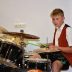 Das Klarinettentrio aus der 5. Klasse (Sophia Haumaier, Mathilda Wimmer und Jakob Hager) spielten schon ganz professionell mit ihrer Lehrerin Marlene Noichl. Ebenso Lena Haumaier, die mit ihrer Klarinette schon beim Haberspitz Wettbewerb den ersten Preis gewonnen hat, spielte ein Solo. Richtig Schwung in den Saal brachte Andreas Beck mit seinem Schlagzeug. Gekonnt und schon richtig professionell spielte er „Sultans of Swing“ von den Dire Straits und nutzte sein Instrument in allen Facetten. Marlene Noichl lobte ihn, weil er immer sehr organisiert ist und sie war froh, ihn als Musiker auch im Jugendorchester zu haben.