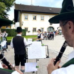Fotos: Blaskapelle Wildenwart vor dem Schloss Wildenwart – Beim Dirigieren wechselten sich Sebastian Graf und Johanna Rosenwink ab.