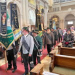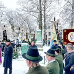 Die Fahnenabordnungen der Vereine trafen sich um 9 Uhr in der Gaststätte Tannengarten. Um 10 Uhr ging’s dann im Kirchenzug, voran die Aubinger Blaskapelle (da spielt auch Stefan Semoff vom BR mit,) gefolgt von der Gaustandarte, Ehrengästen, Gauausschuss und dann den Fahnenabordnungen und Trachtlern zum feierlichen Gottesdienst in der Sendlinger Kirche St. Margaret, der seit Jahrzehnten vom Unterhachinger Dreigsang musikalisch begleitet wird. Anschließend folgte der Marsch zur alten Sendlinger Kirche, wo auf dem umlaufenden Friedhof am Denkmal zur Sendlinger Mordweihnacht 1705 vier Kränze mit begleitenden Grußworten niedergelegt wurden. Zuerst von Stadtrat Alexander Reissl für die Landeshauptstadt München, für den Isargau von Gauvorstand Wolfgang Gensberger, Herbert Reich für den Verein Schmied Kochel und dann Markus Lutz für den Bezirksausschuss Sendling. Abschließend sangen alle gemeinsam “Stille Nacht” und die Minusgrade mit den verschneiten Gräbern haben ihr übriges zur feierlichen Stimmung beigetragen. Zum Ausklang ging’s -zusammen mit den Freunden vom Trachtenverein “Chiemgauer” München (Chiemgau-Alpenverband) im Kirchenzug wieder zurück zum Tannengarten.