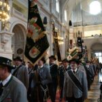 Nach dem traditionellen Weißwurstfrühstück setzte sich der Zug, begleitet von der Aubinger Blaskapelle, geordnet in Richtung Kirche St. Margaret in Bewegung. Dort wurde mit Pfarrer Franz Frank die Jahrtagsmesse gefeiert. Musikalisch gestaltet wurde der Gottesdienst vom Hachingtaler Dreigesang, der die Bauernmesse von Annette Thoma in bewährter Weise vortrug. Zum Abschluss erklang von der Orgel traditionell die Bayernhymne „Gott mit Dir, Du Land der Bayern“, die von der Gemeinde mitgesungen wurde.