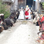 Bild 1293 Die Krampein sitzen Spalier, wenn der Nikolaus mit seinen Engeln aus der Scheune tritt