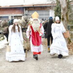 Dem Spektakel wurde sofort ein Ende bereitet, als der Heilige Nikolaus mit seinen zwei Engeln aus dem Tor trat. Brav hockten sie nun Spalier und ließen den heiligen Mann den Weg herunter schreiten. Das Krampusbrauchtum wird traditionell jedes Jahr in der Advent- und Weihnachtszeit aufrechterhalten. Der Heilige Nikolaus geht von Haus zu Haus und spendet mit seinen Engeln den Segen, begleitet von der Geigelstoa Pass.