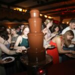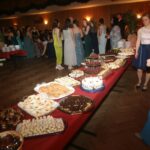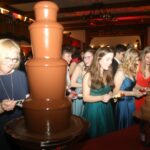 Um 22 Uhr folgte das absolute Highligts: es wurde unter Palmen auf der Tanzfläche ein riesiges Buffet bestehend mit Kuchen- und Waffenkreationen, mit frischen Früchten und ein großer Schokobrunnen aufgebaut. Ein sinnliches Erlebnis für alle Schokoladenfans. Hier konnte jeder Ballbesucher nach Herzenslust exotische Früchte und leckeren Waffeln mit feinster Bio-Schokolade verfeinern. Zudem gab es verschiedene Leckereien. Ergänzt wurde das ganze durch ein leckeres Kuchen- Waffeln- und tollem Bäckereienbuffet, das sich durch seine Vielfalt zu einen wahren Gaumenschmaus entwickelt hat. Mit viel Elan ging es munter und frisch beschwingt, fröhlich weiter, die Zeit verging in Flug, an den Tischen sowie auf dem Tanzparkett herrschte eine tolle Stimmung. Von so viel Tanz und Fröhlichkeit angesteckt, eroberten die Besucher schnell das Parkett zurück und verließen es nur, um kurz die Füße zu entspannen oder einen angeregten Plausch mit den Tischnachbarn zu halten.