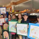 Schleching – Die Schüler der 2. Klasse hatten die Aufgabe, jeweils ein Bild mit dem Thema „Dorfladen“ zu malen. Gemeinsam mit ihrer Lehrerin Irmin Demler hat jeder erstmal einen Entwurf gezeichnet und dann in zwei intensiven Stunden ein Bild gemalt und ein passendes Passepartout ausgesucht. Die Kinder waren sehr kreativ, so hat Mathilda eine Wassermelone und Rhabarber gemalt, Klara, Romy, Antonia und Lena ließen die Verkäuferinnen im Laden Banane, Gurke und einen Apfel essen, Elias und Simon zeichneten einen schönen Obstkorb, Lukas und Cem verewigten die Gemüsetheke und die Kasse auf den Bildern und Christoph zeichnete die Verkäuferin, die gerade Kirschen nachfüllt.