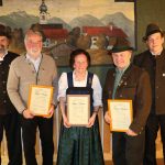 Bericht und Fotos: Heinrich Rehberg – 160 Jahre Erfahrung im Schützenverein „Chiemgauadler“ Umrathshausen: Schützenmeister Sepp Staudacher (rechts) und sein Stellvertreter Thomas Bachmann übergaben bei der Jahreshauptversammlung der Schützengesellschaft „Chiemgauadler“ Umrathshausen die Ehrenurkunde für 60-jährige Vereinsmitgliedschaft an Friederike Panhans Josef Scheck (zweiter von rechts) und Sepp Pollich (zweiter von links) wurden für 50 Jahre ausgezeichnet.