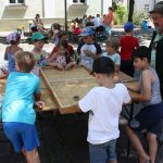 Ehrenamtliche Tätigkeit kann manchmal auch logistische Herausforderungen bringen. So traf es den Trachtenverein „d’Mangfalltaler“ Kolbermoor, welcher ja bereits seit fast zwei Jahren Ganztagesklassen betreut, dass drei Schulfeste in der Stadt zur selben Zeit zu bestücken waren. Dank der gut aufgestellten Personaldecke halfen die Trachtler trotzdem mit außergewöhnlichen Spielen und Bastelmöglichkeiten, den Kindern ein paar Stunden lang die Zeit zu verkürzen. Wie aus einem Kochlöffel Pippi Langstrumpf entsteht, etwas andere Kegelspiele, Haarschmuck aus Perldraht und Stoffresten sowie Geschicklichkeit mit Hilfe eines Bauhelmes, – diese Stände waren fest in der Hand der Schulkinder. So mancher junge Mensch erlebte, dass es auch noch etwas anderes gibt als Handy und Fidget-Hand-Spinner…