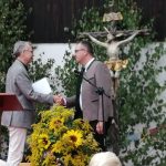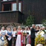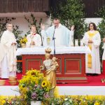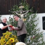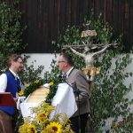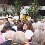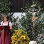 Vorangegangen war ein festlicher Gottesdienst zum Patrozinium der Panger Pfarrkirche Mariä Himmelfahrt. Musikalisch umrahmten ihn der Kirchenchor Pang-Heilig Blut unter Leitung von Andreas Penninger und die Wasner Musi unter Leitung von Hans Rutz. Erstmals seit November zelebrierte nach dessen schwerer Corona-Infektion auch Pfarrvikar Dariusz Burdalski neben Gemeindereferentin Maria Leutgäb wieder eine Messe mit. Ein festliches Bild gaben der Veranstaltung zudem die Fahnenabordnungen der Vereine aus dem Rosenheimer Süden, zahlreiche Ministranten, viele Weggefährten, Familienangehörige sowie eine große Schar von Gläubigen aus Rosenheim und darüber hinaus. Die Frauengemeinschaft Pang-Aising verkaufte zudem traditionelle Kräuterbuschen.