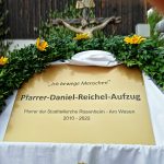 Unter den Ehrengästen waren Andreas Maria Zach, Pfarrer der Stadtteilkirche-Inn, der Landtagsabgeordnete Klaus Stöttner, der ehemalige Landtagsabgeordnete Adolf Dinglreiter, der ehemalige Rosenheimer Bürgermeister Anton Heindl, Paul Deutschenbaur, Vorsitzender des Dekanatsrats, etliche Stadträte und Bezirksräte sowie Rosenheims ehemalige Oberbürgermeisterin Gabriele Bauer, die den im Urlaub befindlichen Oberbürgermeister Andreas März vertrat. Sie war es auch, die offiziell das Schild vom neuen „Pfarrer-Daniel-Reichel-Aufzug“ enthüllte. In ihrer Laudatio würdigte Bauer das Wirken Reichels und erinnerte an so manche schöne, aber auch an schwierige Stunden. In Erinnerung blieb beispielsweise das Hochwasser 2013, das vor allem die Rosenheimer Stadtteile Oberwöhr, Aisingerwies, Endorfer Au und Schwaig heimsuchte und für viele schlaflose Nächte sorgte. Reichel erwies sich damals als „Macher“, der nicht nur Trost und Beistand spendete, sondern auch unbürokratisch vielen Betroffenen half.
