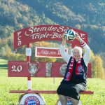 4_Sr. Berlinde war FC Bayern Fan und hat das Aschauer FC Bayern Bankerl genossen_Foto Berger: Sr. Berlinde als FC Bayern Fan bei Fotoaufnahmen fürs Bankerldorf® Aschau i.Chiemgau auf dem FC Bayern Themenbankerl