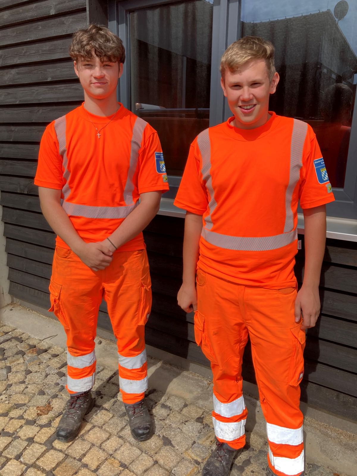 die beiden Auszubildenden in der Straßenmeisterei Ampfing, Anthony Keil und Christoph Schwarzenböck.