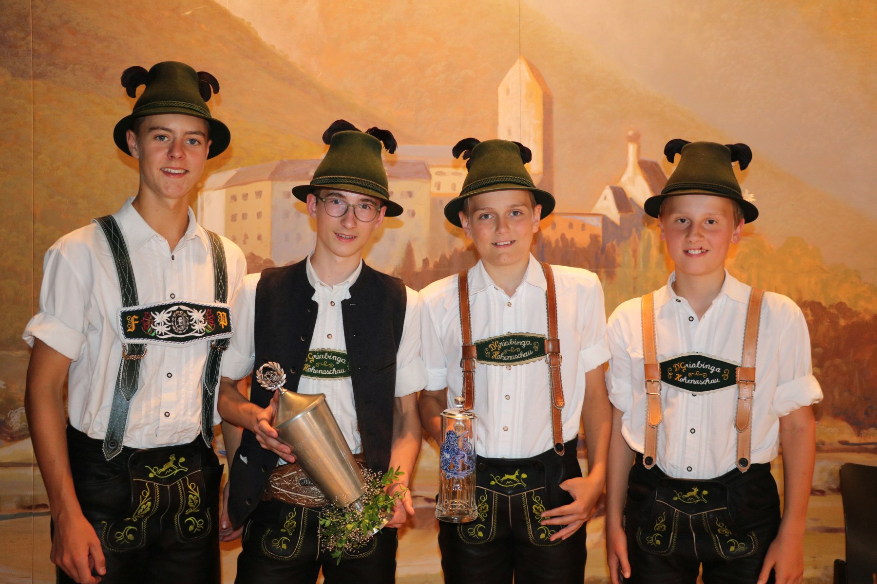 Die Gruppe Hohenaschau I gewann in der Besetzung Florian Pertl, Paul Huber, Marinus Reiserer und Thomas Pertl (von links) die Königsdisziplin – das Gruppenpreisplattln – vor Hittenkirchen und den Niederaschauer Buam.