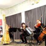 Cras war nicht nur ein außergewöhnlicher Komponist, der schon mit 13 Jahren erste Kompositionen vorlegte, sondern er verband diese Passion mit seinem Beruf als Marinekommandeur und Lehrer an der Marineschule in Brest. In dieser Funktion erfand er ein Winkelmesser als Navigationshilfe, das bis zur Einführung der Navigation durch Satelliten auf jedem Schiff in Gebrauch war. Im Ersten Weltkrieg war Cras Kommandant eines Torpedeobootes. Stets hatte er auf den Schiffen ein Klavier mit an Bord, das ihn zum Komponieren anregte. Auch dieses letzte Stück des diesjährigen Musikfrühlings war ein großes musikalisches Erlebnis. Die weltberühmte Harfenistin Marie-Pierre Langlamet und Max Randlinger, Flöte, brillierten mit wunderschön zarten, weichen und perlenden Klängen auf ihren Instrumenten, ebenso wie Justus Grimm virtuos am Cello, Aylen Pritchin mit hingebungsvoll konzentriertem Spiel auf der Geige im Austausch mit Razvan Popovici auf der Bratsche.