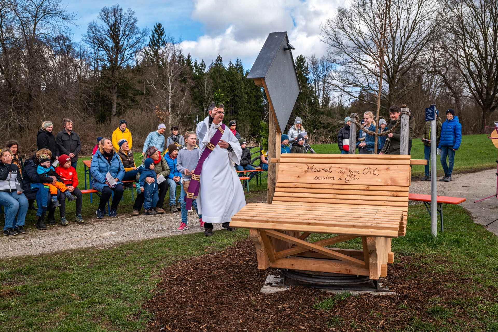 Segen für Wegkreuz und Ruhebank in der Samerberger Filze