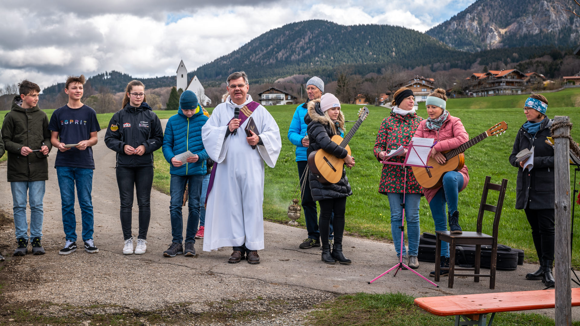 Segen für Wegkreuz und Ruhebank in der Samerberger Filze