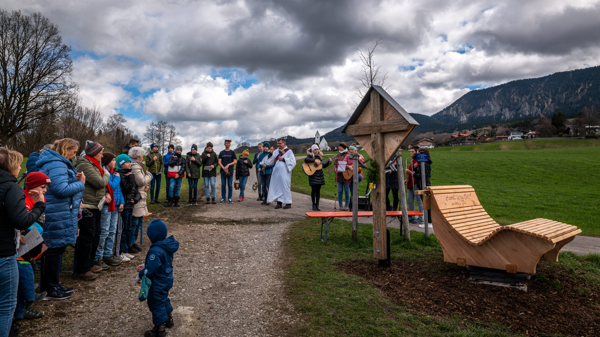 Segen für Wegkreuz und Ruhebank in der Samerberger Filze