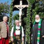 „Vor etwa 125 Jahren erhielt das Kreuz den Segen der katholischen Kirche, jetzt wurde nach der umfassenden Renovierung der evangelische Segen noch drauf gelegt“. Grundstückseigner Dr. Thomas Wrede lud seine Bekannten und die Nachbarn ein zur großen Kreuzweihe und alle folgten dem Ruf. Pfarrer Wackerbarth erinnerte sich an seine ersten Begegnungen mit den vielen oberbayerischen Kreuzen in Feld und Flur, ein Brauch, den er aus seiner Heimat nicht kannte. Mittlerweile habe er sich an die vielen Kreuze gewöhnt und bezeichnete sie als wichtige Zeichen am Wegrand und für die dort wohnenden und vorbeikommenden Menschen. Paul Panzer, Ehrenoberleutnant der Priener Gebirgsschützen war ehrenamtlich gut 40 Stunden tätig und hat dem gesamten Werk mit Corpus Christi, Marienfigur, Kreuzbalken und Dach einen neuen Anstrich gegeben. „Mittlerweile habe ich etwa 60 bis 70 Feldkreuze restauriert, der Schwerpunkt der Arbeiten lag anfangs im Raum Prien und Frasdorf, doch arbeitete ich in den letzten Jahren schon im gesamten Landkreis Rosenheim bis weit hinein nach Tirol“, erinnert sich Paul Panzer.