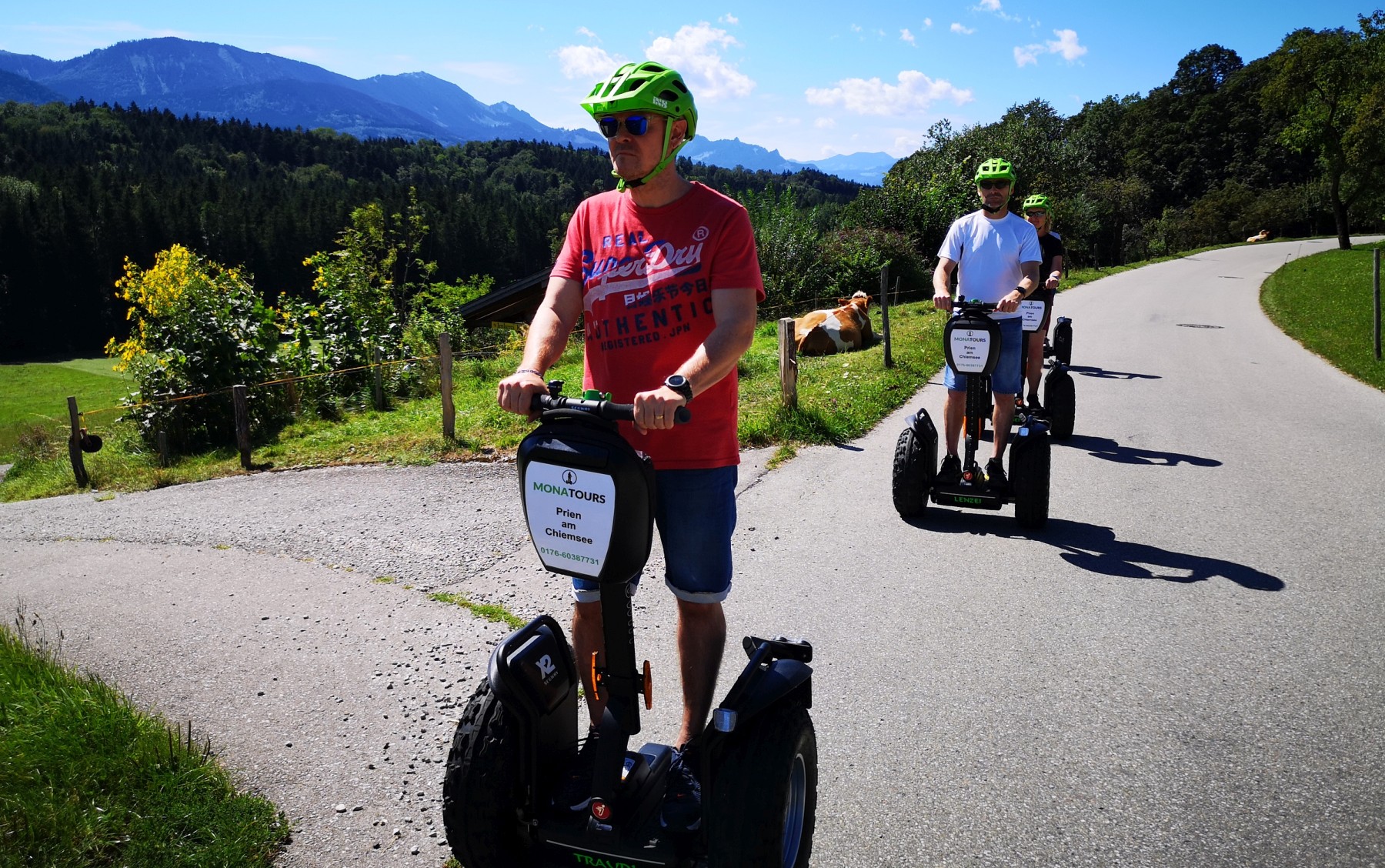 Vorbei an denkmalgeschützten Bauernhöfen und einer über hundert Jahre alten Linde erkunden die Teilnehmer:innen der Segway-Panoramatouren das hügelige Umland von Prien.