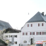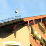 Hoch über den Dächern der Marktgemeinde bot sich ein interressantes Spektakel. Eine Slaklinegruppe, früher sagte man Seiltänzer, bot auf einem, zwischen dem Kirchturm der Pfarrkirche und der Terrasse von Schloß Neubeuern gespannt Seil ihre Darbietungen. Staunend wurde diese Leistung beobachtet und mit viel Applaus bedacht.