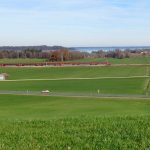 Fotos: Hötzelsperger – Blick in auf die Bahnlinie zwischen Prien und Bernau auf die Bahnlinie mit dem Chiemsee im Hintergrund