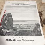 Als 1949, also vor 70 Jahren die Bernauer Trachtler erstmals nach dem Zweiten Weltkrieg Gastgeber für ein Trachtenfest des Chiemgau-Alpenverbandes waren, da war Erich Hagner vom Trachtenverein „Chiemgauer-München“ als 17jähriger Bursche mit dabei. Beim nunmehrigen 83. Gaufest war Erich Hagner wiederum dabei und er brachte nicht nur sich und seine Chiemgauer Tracht, sondern auch noch interessante Erinnerungsstücke mit, denn er war seit 1949 bei allen Gaufesten in Bernau dabei. Diese waren nach dem 50jährigen Gründungsfest der Bernauer Trachtler 1949 die Feste 1960 (24. Gaufest), 1969 (70. Gründungsfest mit Fahnenweihe des GTEV „D´Staffesstoana“ Bernau), 1984 (48. Gaufest mit Standartenweihe des Chiemgau-Alpenverbandes) und 1999 (63. Gaufest zum 100. Vereinsjubiläum der Bernauer Trachtler). Erich Hagner, der seit Jahrzehnten alle Festzeichen, Festschriften und auch Erinnerungsbänder fein säuberlich aufbewahrt, erinnert sich noch gut und gerne an das Fest 1949 als er sagte: „Unser Verein, der damals aus Chiemgauer Familien bestand, deren Vorfahren vom Chiemgau aus Arbeitsgründen in die Stadt München zogen, machte einen Zweitages-Ausflug. Dabei wohnten wir dem Heimatabend bei, übernachteten privat bei Bernauer Familien und nach dem Festumzug ging es wieder zurück in die Landeshauptstadt“. Bei der Festschrift aus dem Jahr 1949 gibt es interessante Eintragungen bei den Festbestimmungen, unter anderem heißt es darin: „Das Jodeln, Schreien und Juchzen während des Kirchenzuges ist zu unterlassen“. In einem weiteren Punkt wird darauf hingewiesen, dass Erinnerungsbänder für die Vereins-Fahnenabordnungen nur bei einer Mindestabnahme von 15 Festzeichen ausgehändigt werden.