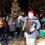 Selber Singen und damit mit vorweihnachtlichen Liedern nicht nur Anderen, sondern auch sich selbst eine Freude machen, das war auch heuer wieder in der Marktgemeinde Prien a. Chiemsee möglich. Eingeladen hatten inmitten der Fußgängerzone zwischen den Buden und Ständen des Priener Christkindlmarktes das Volksmusikarchiv des Bezirks Oberbayern und die Chiemgau-Zeitung des Oberbayerischen Volksblattes. Zu den aktiven, in großer Anzahl gekommenen Sängern gesellte sich auch Bürgermeister Jürgen Seifert, der anschließend noch zu einem Kinderpunsch- und Glühwein-Umtrunk eingeladen hatte. Für das Programm gemäß der traditionsreichen Liederhefte, für die musikalische Begleitung und für humorvolle Ansagen sorgte Ernst Schusser vom Volksmusikarchiv des Bezirks Oberbayern in Bruckmühl.