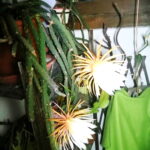 Dazu weiß er zu berichten: “Zum ersten Mal vor 33 Jahren blühte sie, seither aber nicht jedes Jahr. Mal eine Blüte, oft wenige und auch mal 5. Betörend ist der Duft – unvergleichlich! Die Blüten sind so groß wie ein Volleyball”.