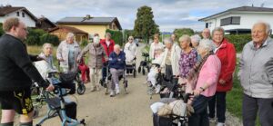 Von den gegenwärtig ca. 140 Bewohnern der Seniorenresidenz sind viele auf Gehhilfen angewiesen und waren bereit, bei einem Ortstermin ihr Problem zu veranschaulichen. Bürgermeister Friedrich erklärte Ihnen, dass durch das Absinken des Chiemsee Pegels Sanierungsarbeiten für diesen nicht der Gemeinde gehörenden Feldweg erforderlich wurden. Eine Fremdfirma wurde damit beauftragt, weitere Schäden abzuwenden. Er entschuldigte sich im Namen der Gemeinde bei allen Teilnehmern für die kurzzeitigen Einschränkungen der Mobilität durch den falschen Belag und dankte ihnen, dass sie sich vertrauensvoll an ihn gewandt hatten. Er hatte selbst als Radfahrer bereits festgestellt, dass die zu grobkörnige Kiesaufschüttung nicht nur eine Behinderung, sondern bei Ausweichmanövern eine Gefahrenstelle darstellt. Die Stabilität des Belags ist nun durch das Abräumen des groben Kieses und Verfestigung durch Sand wieder hergestellt. Langfristig ist jedoch keine andere Lösung in Sicht, da die Gemeinde nur begrenzte Maßnahmen vornehmen darf. Klaus Metz schlug vor, den Weg nochmals mit einer Walze zu glätten, um die Festigkeit auch bei erneutem Regen zu gewährleisten.