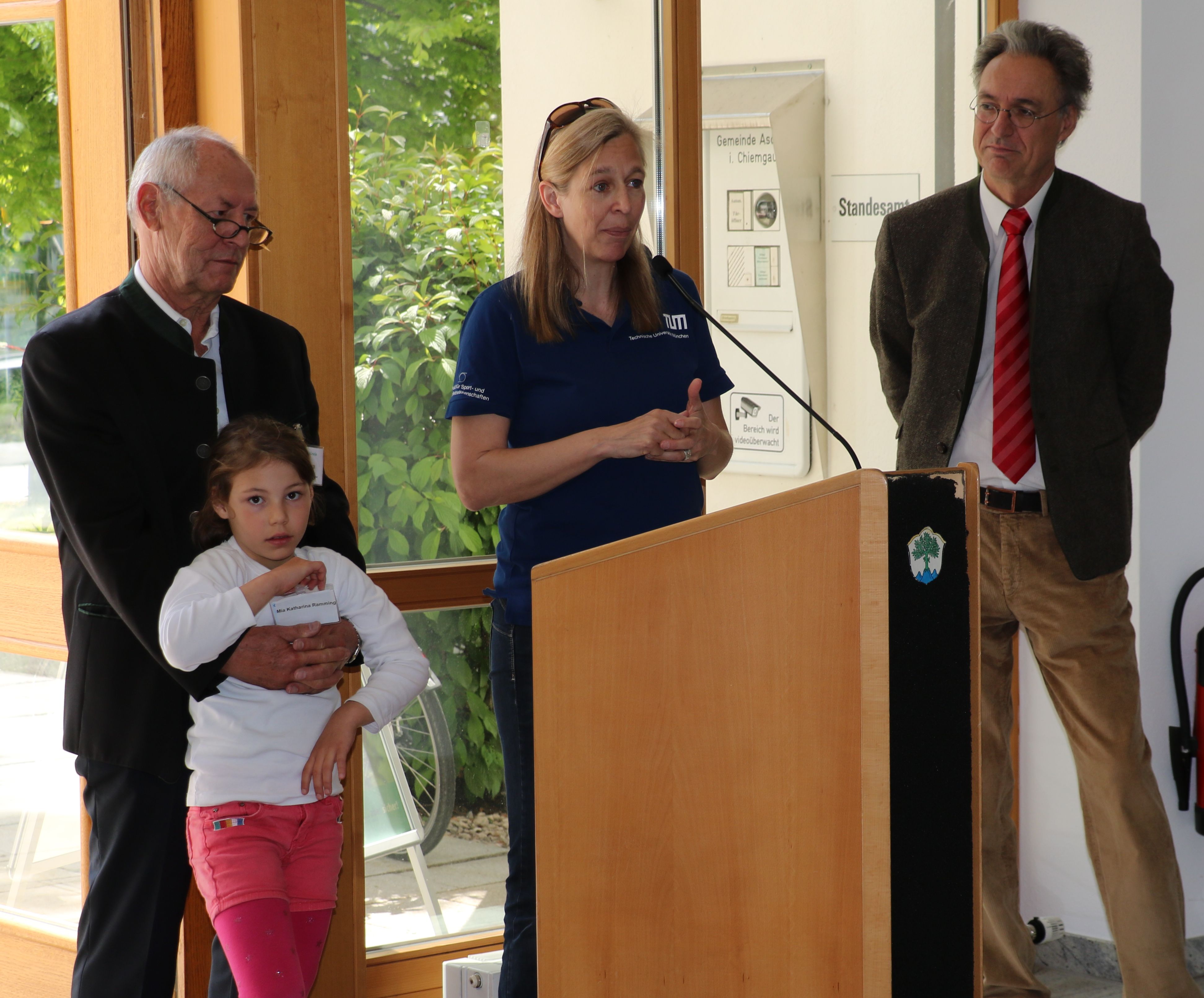 Eröffnung des Seniorentages im Aschauer Rathausfoyer. Der Seniorenbeauftragte der Gemeinde Philipp Ramming, Dr. Birgit Böhm, Akademische Rätin am Lehrstuhl für Präventive Pädiatrie an der TU München und Bürgermeister Peter Solnar