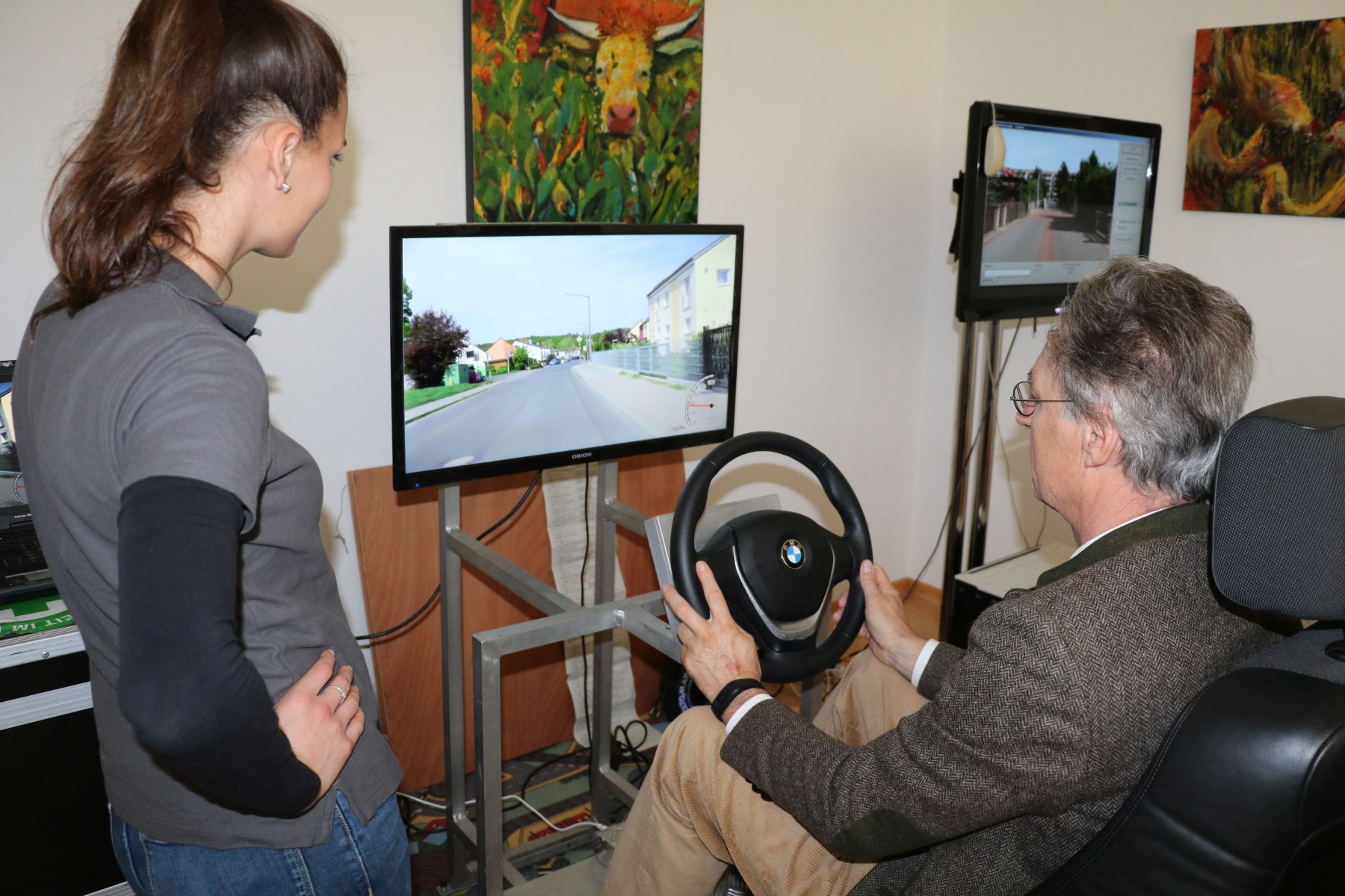 Bürgermeister Peter Solnar am Steuer des Fahrsimulators der Verkehrswacht Rosenheim