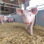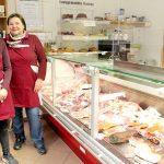 Fotos: 1. Junior-Chefin Franziska und Senior-Chefin Mariele Simon in ihrem Verkaufsladen – 2. Glückliche Strohschweine vom Seppenbauern