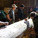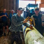 Fotos: Rainer Nitzsche – Eindrücke von den Törwanger Maibaum-Vorbereitungen in der Simssee-Region (unter anderem vom Abzählen der Ringe vom Baum, der auf ein Alter von 100 Jahren schließen lässt).
