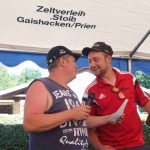 18 Vierer-Teams aus Tirol und aus Bayern beteiligten sich einen schönen Sonnen- und Sonntag lang am heurigen Hufeisenturnier des Hufeisenvereins von Prien-Kaltenbach auf dessen Vereinsgelände. Nach einem spannenden Finale siegte das Team Söchtenau-Schneemann mit den Werfern Thomas Adlmaier, Sepp Hohenadler, Michael Süss und Manfred Liebl vor der Mannschaft Kössen I. Die weiteren Mannschaften kamen aus Kelchsau, Nussdorf am Inn, Schleching, Niederndorfer Berg, Vogtareuth, Eggstätt, Vagen, Erl-Bubenau, Grünthal  und Kolbing. Die Gastgeber nahmen mit drei Teams teil. Für alle Teilnehmer gab es Wurst- und Fleischpreise. Die Siegerehrung nahm Priens Bürgermeister Andreas Friedrich vor, dabei lobte er den kameradschaftlichen Sport- und Freizeitgeist über die bayerisch-tirolerische Grenze hinweg. Zugleich lud er  zur bevorstehenden Festwoche vom Donnerstag, 23. Juni bis Montag, 27. Juni ins Festzelt am Hohertinger Weg anlässlich des Jubiläums „125 Jahre Markterhebung“ in Prien ein.  Hufeisenvereins-Vorstand Josef Freund und Sportleiter Manfred Zott dankten bei der Preisvergabe allen Helferinnen und Helfern, die zum Gelingen des Festtages mit Bewirtung beitrugen. Die musikalische Gestaltung übernahmen die Hofbauern-Buam aus Prien. Bereits am nächsten Sonntag, 19. Juni ist in Prien-Kaltenbach wieder was geboten, dann spielt ab 10 Uhr die Blaskapelle Wildenwart zum Frühschoppen des Veteranenvereins Wildenwart im Steindlmüller-Obstgarten auf.