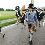 Nach einem Gottesdienst, der witterungsbedingt nicht an der Kapelle oberhalb von Sölllhuben, sondern im Festzelt festlich gefeiert wurde, konnten die Trachtler am Pfingstsonntag doch noch nach draußen gehen.