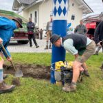Nachdem die Wetterprognosen nichts Gutes vorhergesagt hatten, traf man sich am Sonntagmorgen in der Ortsmitte und entschied sich, den Maibaum trotzdem aufzustellen. Es war die richtige Entscheidung, da es der Wettergott gut mit den Söllhubnern meinte.