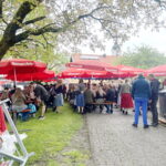 In Söllhubens Ortsmitte rührte sich was. Viele Zuschauer waren gekommen, die Trachtenkinder traten auf und die Söllhubener Dorfmusikanten umrahmten das Aufstellen musikalisch. Bis in die Abendstunden blieben die letzten Gäste sitzen. Im Zelt hatte jeder ein trockenes Plätzchen. Es war ein schöner Aufstelltag.