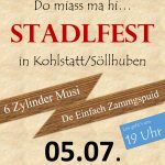 Am kommenden Wochenende ist ziemlich was los im Kohlstatter Stadl. Los geht’s am Freitag, 5. Juli, um 19 Uhr mit dem Stadlfest. Die beiden jungen Musikgruppen „De einfach Zammgspuid“ und die „6 Zylinder Musi“ werden für einen unterhaltsamen Abend mit ihren abwechslungsreichen Musikstücken sorgen. Die Kindergruppe führt ihre Tänze und Plattler auf.