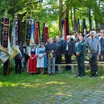 Freialtar/FahnenDSCF1709: Rund um den grün umrankten Freialtar hatten sich die rund 40 Vereinsfahnen und die Wallfahrer gruppiert.