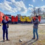 Foto 2: Sabine Lemm – 2. Bürgermeister Daniel Artmann und Abuzar Erdogan, Vorsitzender Stadtjugendring auf dem zukünftigen Gelände des Beachvolleyballfeldes auf der Loretowiese.