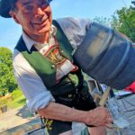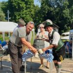 Bei hochsommerlichen Temperaturen und unter weiß-blauem Himmel wurde das Fest auf dem Bayernplatz mit alpinen Klängen von „Alphorn-Bavaria-Berlin“ eröffnet. Danach hieß es „O’zapft is“. Martin Stock, der das Fass mit fränkischem Bier als Geburtstagslage spendierte, brachte den edlen Gestensaft mit einem Schlag zum Fließen. Martin ist auch Initiator des Berliner Frankenstammtisches, mit dem er die fränkischen Regierungsbezirke von Bayern in Berlin vertritt. Neben den Franken war auch Franz Schuhbauer mit seinem Bayernstammtisch Berlin vertreten, dessen Stammtischbrüder mehr aus Oberbayern, Niederbayern und der Oberpfalz stammen. Musikalisch wurde der Schwäbische Regierungsbezirk repräsentiert, von Felix Lämmel mit seiner Jodel-Moni. Beide gehören auch zu den Steirer-Musikanten des Vereins. Zusammen mit Musikern vom Berliner Musikantenstammtisch wurde das Sommerfest stimmungsvoll umrahmt.