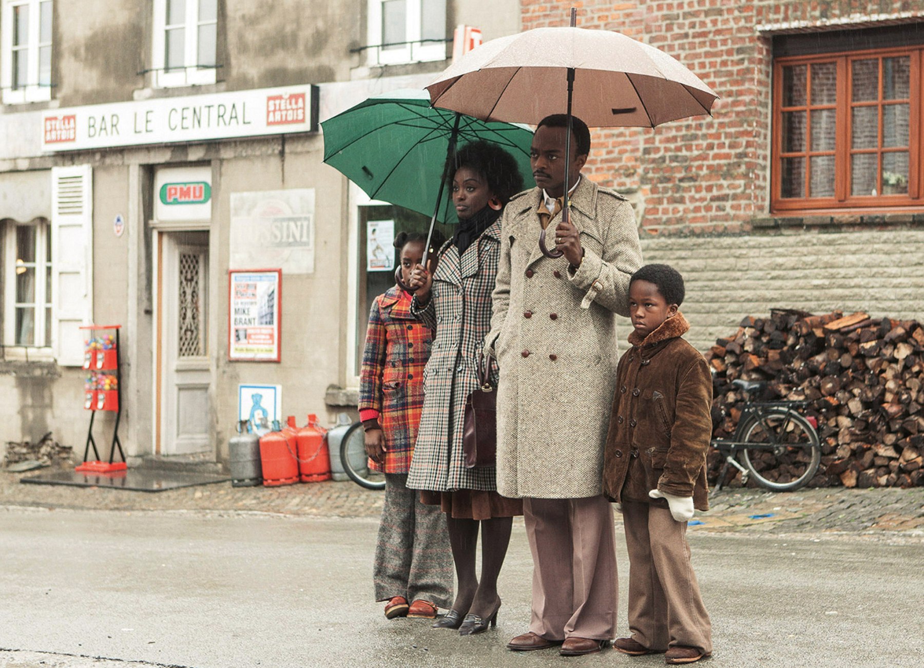 Von wegen „Bienvenue à Marly-Gomont“: Seyolo Zantoko und seine Frau Anne, samt den beiden Kindern Kamini und Sivi, stehen erst einmal im Regen. © Prokino Filmverleih GmbH, München.