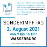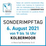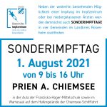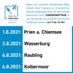 Der Landkreis Rosenheim bietet, neben der weiterhin bestehenden Möglichkeit einer Impfung im Impfzentrum oder bei niedergelassenen Ärzten, ab dem 1. August 2021 Sonderimpftage in vier Gemeinden an.