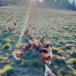 Am Sonntagabend trafen wir die Wastlhof-Bäuerin Maria Riepertinger als sie über die Wiesen des Hühnerauslaufes geht. “Es ist so schön mit den Tieren die ruhige Abendstimmung zu genießen. Unter Tags war es bei uns heute sehr windig, das mögen die Hühner nicht so gerne – da bleiben die meisten lieber geschützt in Stallnähe. Jetzt am Abend picken und scharren sie ruhig und zufrieden durch den großzügigen Auslauf..” erzählt sie uns.