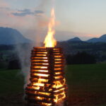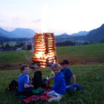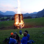 Besonders die Kinder konnten es kaum erwarten und vergnügten sich mit lebhaften Spielereien, bis es bei Einbruch der Dämmerung dann soweit war und das Feuer Licht und Wärme verbreitete.