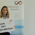 Bericht, Foto und weitere Informationen unter www.stifterkreis-zukunft.de  –  Alexa Dietz, geschäftsführendes Vorstandsmitglied des Stifterkreis Zukunft, freut sich mit den Empfängern über die beachtliche Spendensumme des Stifterkreis Zukunft und seiner Stiftungsfonds in 2023.