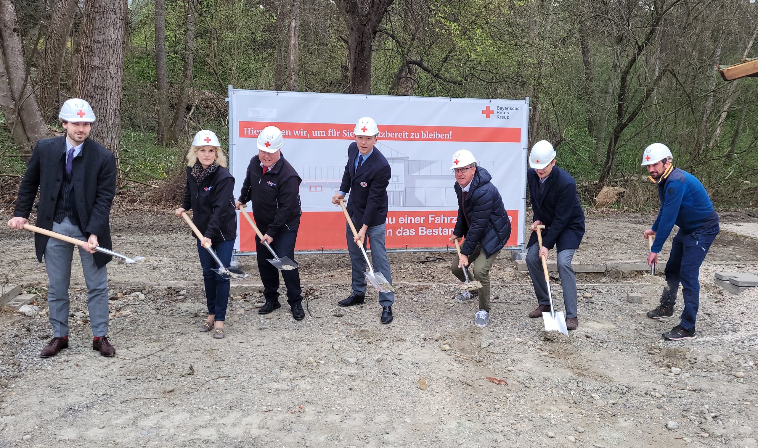 Von links: Bürgermeister Simon Hausstetter (Gemeinde Rohrdorf), MdB Daniela Ludwig (Vorsitzende BRK Kreisverband Rosenheim), Direktor Martin Schmidt (Kreisgeschäftsführer des BRK Rosenheim), Maximilian Unterlinner (stellv. Bereitschaftsleiter Rohrdorf), Bürgermeister Georg Huber (Gemeinde Samerberg), Bürgermeister Christoph Schneider (Gemeinde Neubeuern), Markus Schauer (Bauplaner)